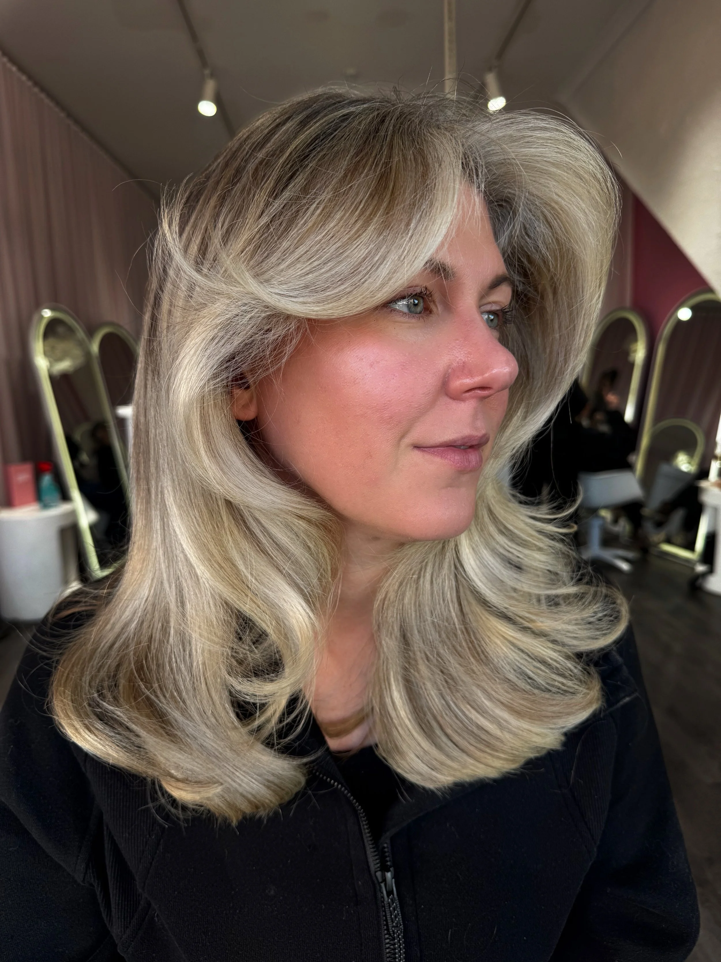 Using only premium lighteners and bond-building treatments, our expert team ensures your blonde stays healthy, radiant, and strong from roots to ends. Expect precision, depth, and brightness where it counts.